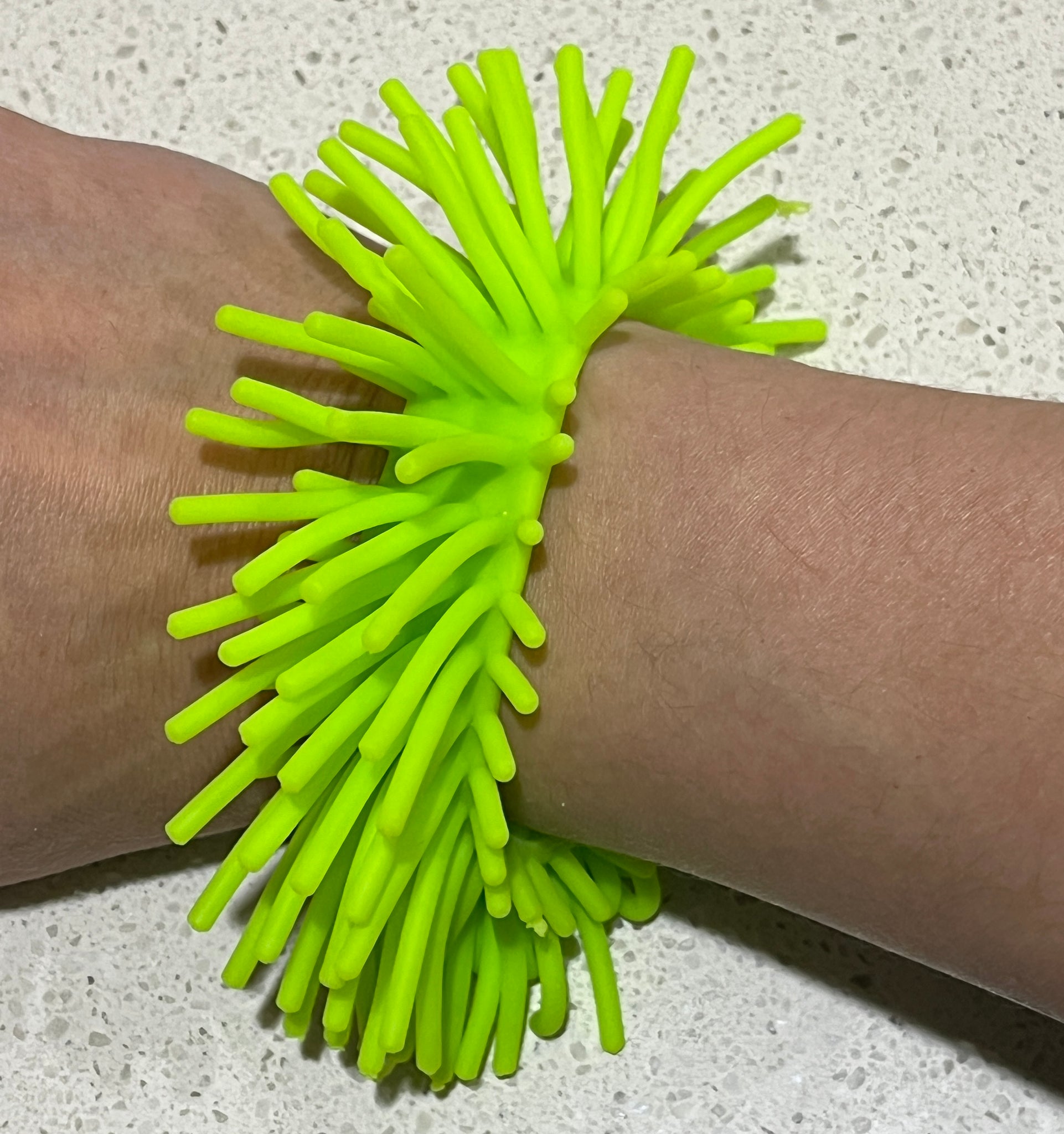 These soft and stretchy bracelets have raised bumps on the inside for additional tactile stimulation.